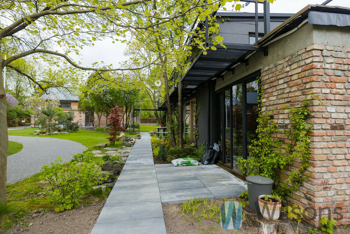 - Z salonu wyjście do ogrodu oraz na wpisującą się w całościowy design budynku werandę, stanowiąca wygodną przestrzeń do całorocznego wypoczynku.