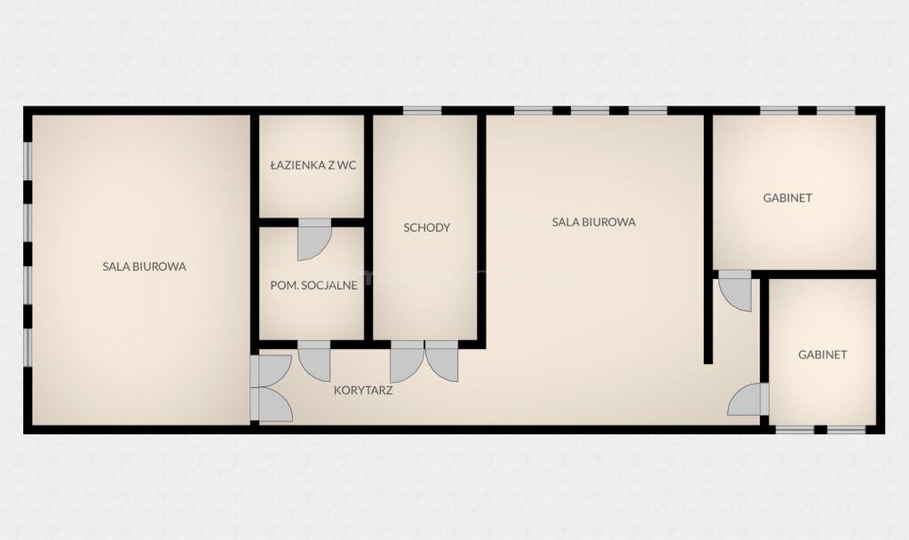 Na piętrze dostępne jest 164 m² powierzchni biurowej obejmującej dwa oddzielne gabinety, osobne pomieszczenie socjalne z zapleczem kuchennym oraz łazienkę z toaletą. Układ sprzyja wygodnej organizacji pracy zespołów i spotkań. Pomieszczenia są klimatyzowane, co przekłada się na komfort pracy o każdej porze roku. Do budynku doprowadzono łącze światłowodowe NASK. Oferuje stabilny, symetryczny internet 200/200 Mb/s, co ułatwia pracę firmom korzystającym z zaawansowanych narzędzi i usług online. Lokal może pozostać umeblowany lub zostać przekazany pusty, w zależności od indywidualnych potrzeb.